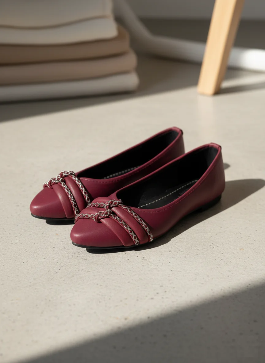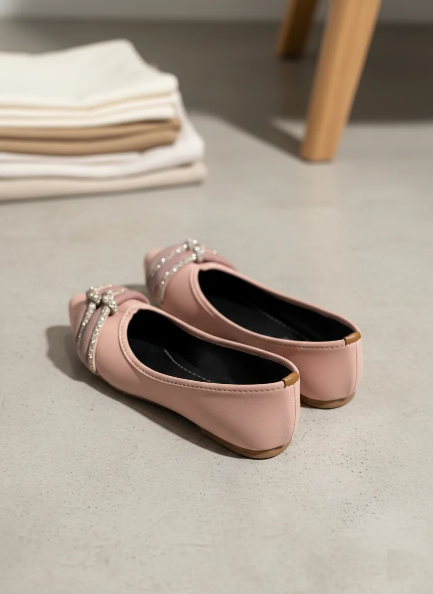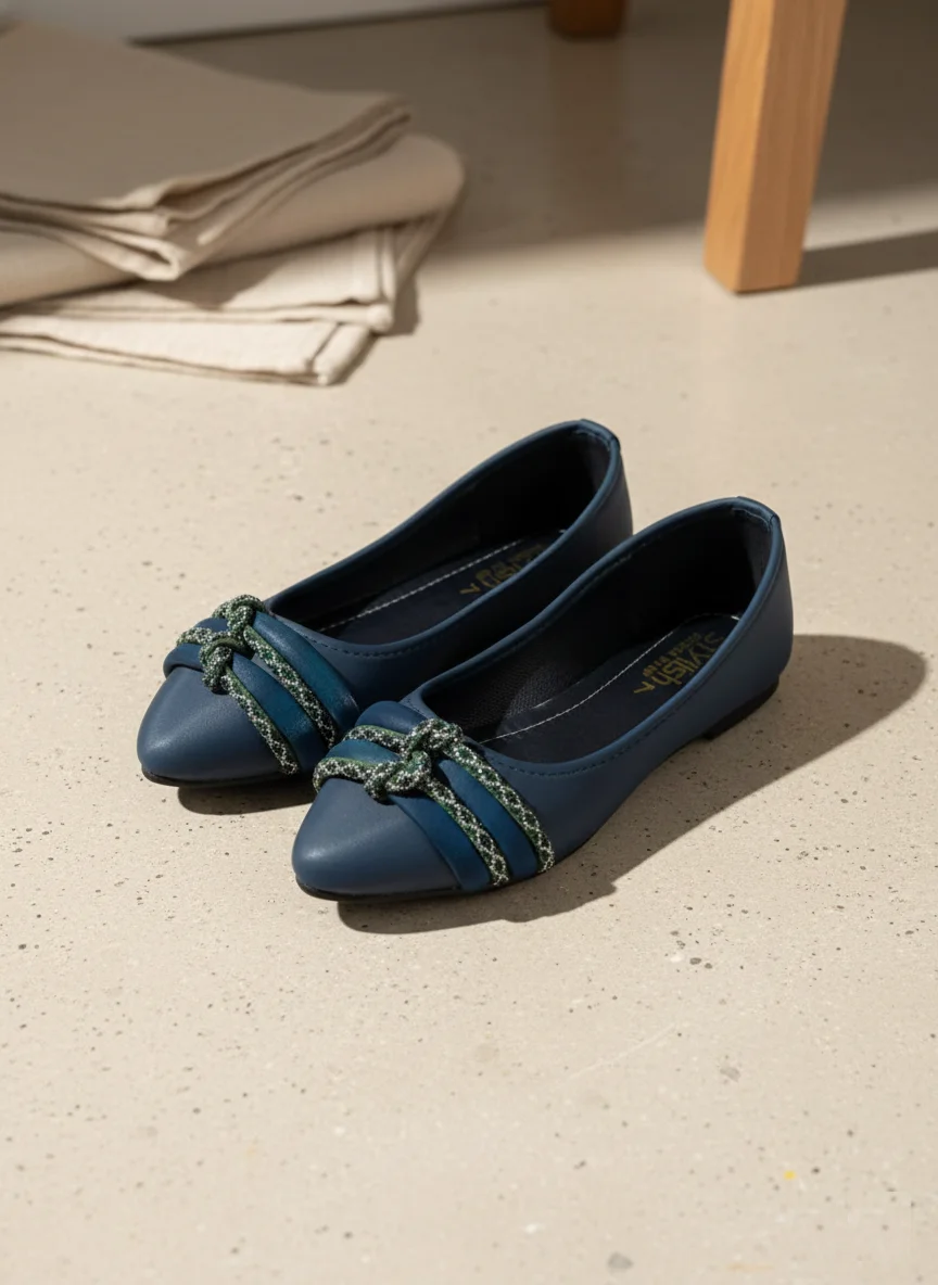 Step into effortless elegance with these uniquely designed pointed flats. The comfortable slip-on silhouette is beautifully accented by a decorative twisted knot detail across the vamp, featuring a subtle sparkle overlay that adds a touch of sophistication. Crafted for both style and ease, these shoes transition seamlessly from day to evening wear, ensuring you stay comfortable while making a fashionable statement. They are the perfect choice for anyone looking to elevate their everyday ensemble.