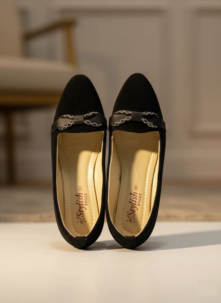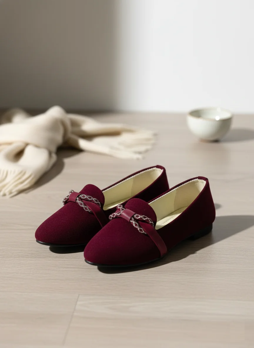Step into everyday luxury with these sophisticated slip-on flats. Crafted with a soft, plush exterior, they bring an air of effortless refinement to any outfit. The standout feature is the delicate strap adorned with a charming embellished bow detail, adding a subtle sparkle that elevates the classic design. With their comfortable low profile and cushioned insole, these shoes are perfect for transitioning seamlessly from the office to an evening out, proving that you don’t have to sacrifice style for all-day comfort.